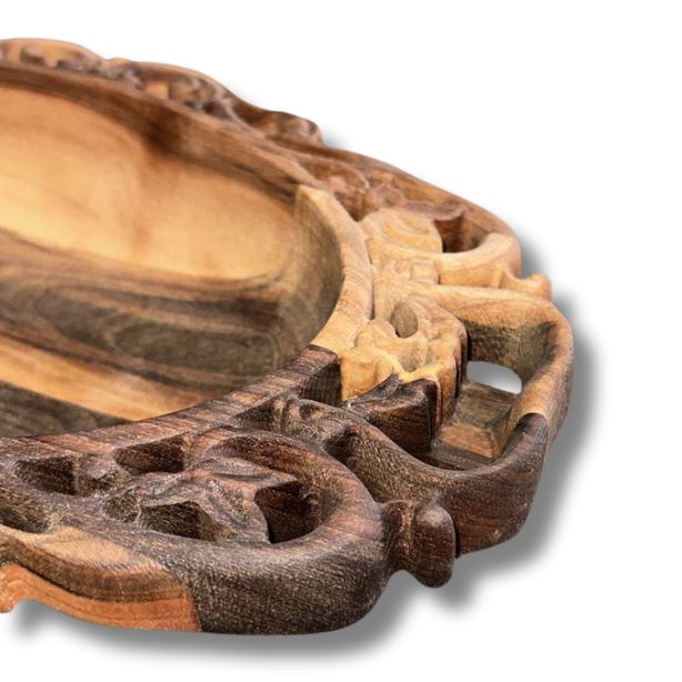 Təmiz qoz ağacından hazırlanmış əl işi çörək qabı — həm estetik, həm də funksional seçimdir. Hər bir qab əl işidir və unikal naxışa malikdir, masanıza təbii və zərif bir görünüş qatır. Çörək, çörək növləri və digər quru məhsulların təqdimatı üçün uyğundur. Davamlı və ekoloji cəhətdən təhlükəsiz materialdan hazırlanmışdır.