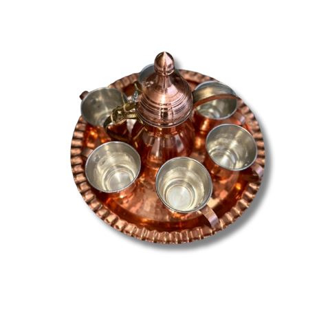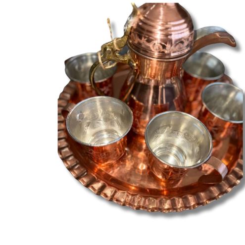 Mis sərəb dəsti qabı ənənəvi əl işçiliyi ilə hazırlanmış yüksək keyfiyyətli məmulatdır. Qab həm dekorativ məqsədlə, həm də gündəlik istifadə üçün tam uyğundur. Şərq naxışları, əl çəkilməsi və misin özünəməxsus parıltısı məhsula xüsusi zəriflik əlavə edir. Mətbəx, süfrə və interyer dekorunda estetik görünüş yaradır. Hədiyyəlik olaraq da mükəmməl seçimdir.