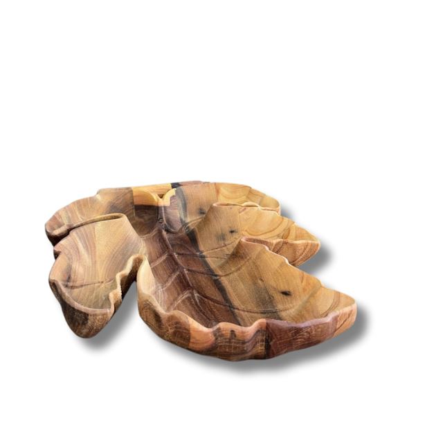 Блюда в форме листа, изготовленные из натурального грецкого дерева, идеально подходят как для декора, так и для повседневного использования. Каждое изделие выполнено вручную и обладает уникальным рисунком, придавая столу естественный и элегантный вид. Подходят для орехов, конфет, небольших фруктов и других закусок. Изготовлены из прочного и экологически безопасного материала.45
